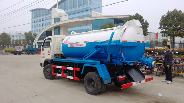 四川成都一客戶在我廠提走一臺特殊定制的東風勁卡吸污車,該吸污車選裝杭州威龍泵,進口和出口為特殊要求,進口為100的陽陽端,出口為150陽陰端(我廠標準配置為100的進口和出口,客戶選裝150出口主要考慮是100進口吸入污物后通過150出口出來就不會出現(xiàn)堵塞的情況,客戶考慮的還是比較周到的),加裝防溢報警裝置。