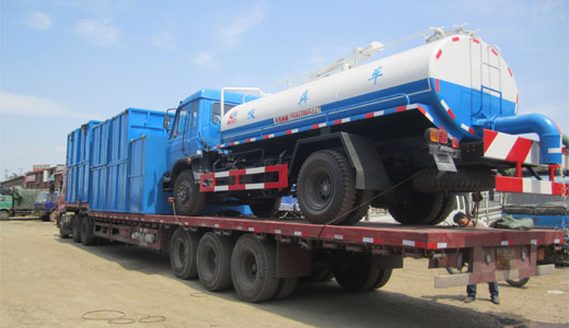 上圖為客戶購買的垃圾箱及吸糞車整車通過半掛來運輸