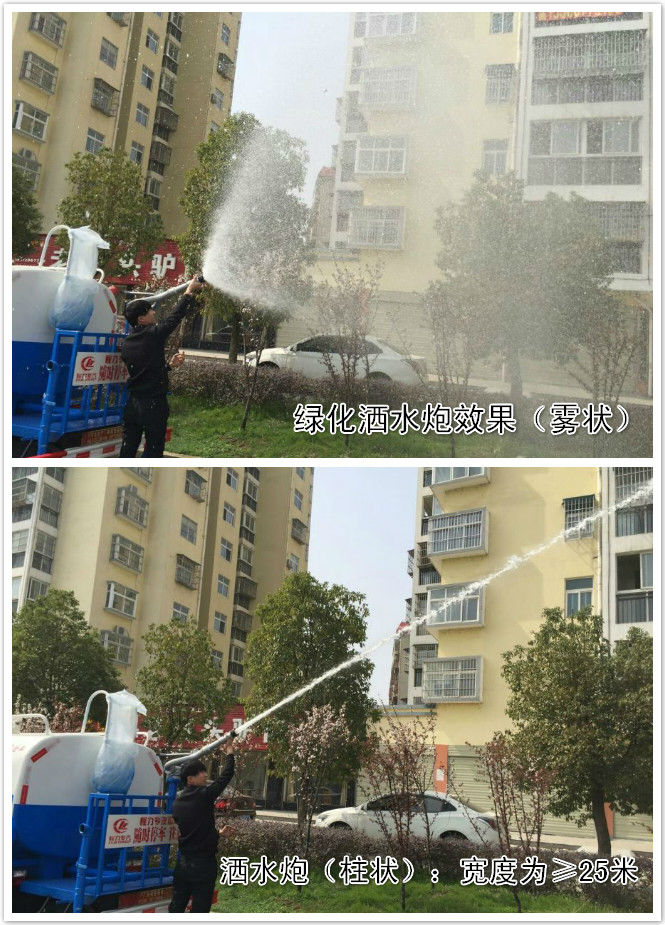 灑水車后灑(一般在小區,廠區,煤場,這種窄點的路況可以用后灑降塵,噴出來的水狀為扇形)
