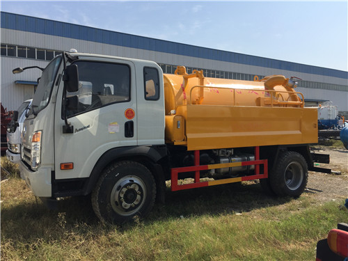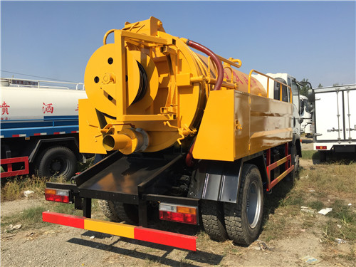 高壓清洗吸污車罐體兩側(cè)中部設(shè)有走臺箱,平時用于擱置吸污膠管,維修時站立。罐體內(nèi)部裝有防蕩板,用以減少車輛行駛所引起的液體的劇烈晃蕩沖擊對罐體及其車架連接部位損壞。前封頭設(shè)有觀察量管,便于監(jiān)視裝載量,防止超載。底部設(shè)有清洗孔,平時密封著,清洗罐體時,可打開清洗孔蓋,讓污水自流排出。