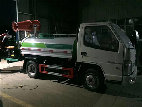 C證藍牌灑水車噴霧機主要是通過泵對水流進行加壓,之后水流通過炮筒中的幾十個小型噴射口,在風機高速旋轉產生的強大風力中噴灑出去,產生成霧狀,形成了我們看到的噴霧,達到了霧灑的效果。
