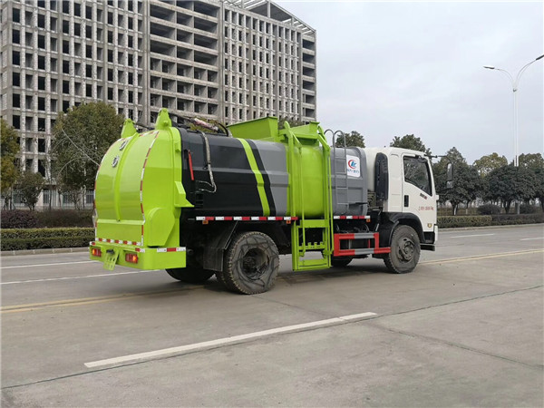 餐廚垃圾車由汽車二類底盤、密封式壓縮餐廚垃圾廂、液壓系統(tǒng)、操作系統(tǒng)組成。整車為全密封型,自動(dòng)壓縮、自行傾倒、壓縮過程中的污水全部進(jìn)入污水箱,較為徹底的解決了垃圾運(yùn)輸過程中的二次污染的問題,關(guān)鍵部件采用進(jìn)口部件,具有壓力大、密封性好、操作方便、安全等優(yōu)點(diǎn)。可選配后掛桶翻轉(zhuǎn)機(jī)構(gòu)或垃圾斗翻轉(zhuǎn)機(jī)構(gòu)以及后翻轉(zhuǎn)式幾種車型;
