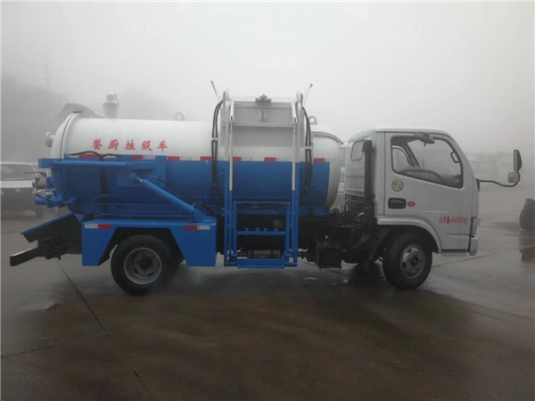 餐廚垃圾車容積為:4-6立方米,可裝生活垃圾車3.4-5噸,廂體可選用碳鋼或錳板材質制作,液壓控制系統可選用國產配件或進口配件,駕駛室內外雙操作系統,PLC智能一鍵循環控制系統。