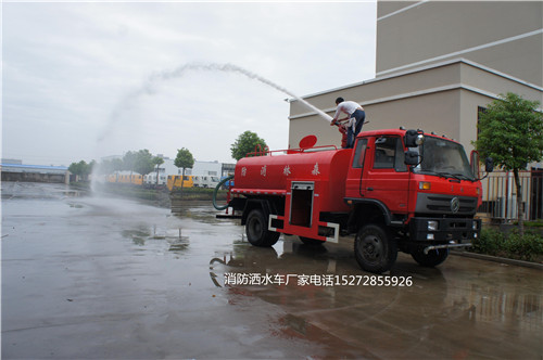 本車分為兩種雙排和單排駕駛室,罐體采用4CM厚優質碳鋼Q235材質,防銹處理;帶前沖后灑,罐頂裝PS20消防炮,射程45米,關鍵時可作為火災滅火用,和消防車功能一樣;后帶工作平臺,裝有灑水炮,射程25米,平時可作為社區廠區綠化澆花用;前沖可為社區街道路面降塵灑水。容積可裝水2-3噸(方),真正的做到了一車多用,且價格便宜實用。