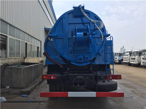 高壓清洗吸污車采用圓形罐體,具有液壓舉升自卸功能,便于將各種污泥傾倒干凈,而且后罐門可以液壓自動開啟,便于清理罐體內(nèi)的沉積物、凝固物及對罐體內(nèi)部進(jìn)行維修、保養(yǎng)。