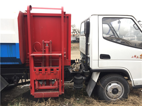 該掛桶式垃圾車的收運方式是目前國內(nèi)泛采用的垃圾收集轉(zhuǎn)運方式,其專用裝置的功能均以汽車發(fā)動機為動力,通過液壓機構(gòu)手動或電控、氣控來實現(xiàn)。車輛的箱體采用優(yōu)質(zhì)炭鋼板全密封焊接結(jié)構(gòu),具有強度高、重量輕,防塵、防溢不產(chǎn)生二次污染等優(yōu)點。