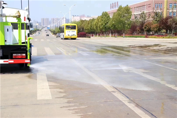 灑水車前沖與腰沖的功能與目的是一樣的,主要是為了將路面的泥巴、塵土、垃圾沖到路邊,方便環衛工人清掃。前沖功能是灑水車的標準配置,是環衛灑水車不可或缺的主要功能之一。