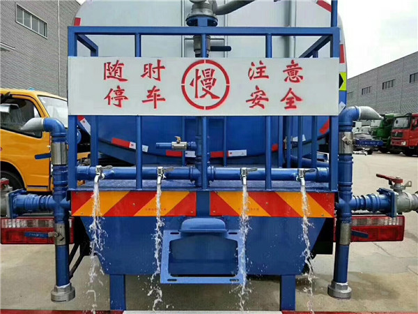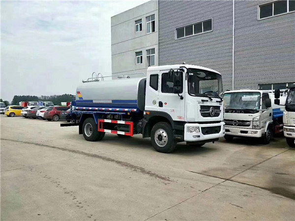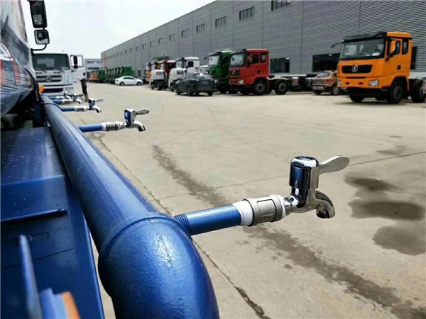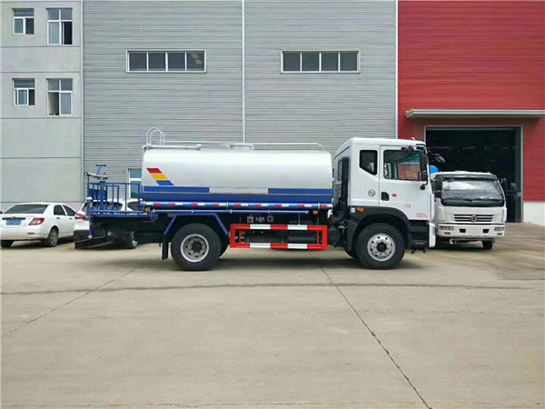 保定用戶購置15噸東風T5保溫運水車帶灑水車發車,該車夏季用戶綠化噴灑使用,而且駕駛室前置電動灑水炮,冬季用來運輸熱水,一車多功能。