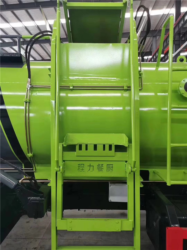 環(huán)衛(wèi)餐廚垃圾車是一種用于收集和運(yùn)輸生活垃圾、食品垃圾(泔水)及城市淤泥的專用車輛。采用側(cè)提桶上料方式進(jìn)行餐廚垃圾收集,采用推板推擠或自卸式進(jìn)行卸料。主要結(jié)構(gòu):汽車底盤、垃圾廂體、底架、側(cè)提桶機(jī)構(gòu)、后門總成、推板總成、液壓系統(tǒng)和電控系統(tǒng)。液壓及電控系統(tǒng)由油泵、油缸、油箱、電液控制閥、PLC、行程開關(guān)和控制開關(guān)等組成。同時(shí)本車裝配高壓清洗系統(tǒng),自帶水箱,可以在現(xiàn)場(chǎng)對(duì)本車及垃圾桶進(jìn)行沖洗。是城鎮(zhèn)餐廚垃圾收集運(yùn)輸?shù)睦硐牍ぞ摺?/p>