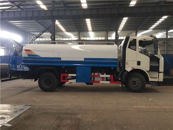 10噸解放J6灑水車匹配法士特8變速箱,1098斷氣剎后橋,250雙層載貨車架,承載能力強。