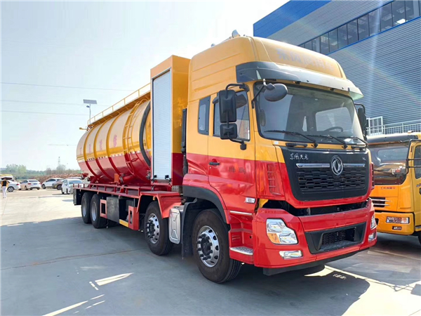 而東風天龍清洗吸污車帶副發則可以通過升舉罐體,打開后蓋的方式直接排污,沒有排放殘留,不需要清理罐體。如果長時間不用車,為了減少罐體的腐蝕,需要將罐體內部沖洗干凈。東風天龍清洗吸污車帶副發沖洗罐體內壁是,需要人進入罐體內,用水來沖洗罐體內壁。而東風天龍清洗吸污車帶副發在沖洗罐體內壁時,可以在打開罐體后蓋后,就站在罐體外面利用水龍頭沖洗就可以了。