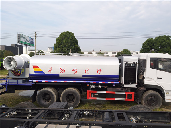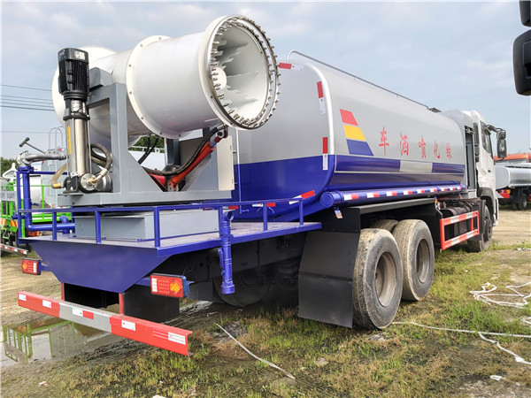 多功能抑塵霧炮車集灑水、噴藥于一體,罐體面積達(dá)6.563立方米,由電腦全程控制,噴射距離長達(dá)50余米,對噴射面積大、距離長、樹木高的綠化是最大優(yōu)勢,而且可以提高幾倍的效率。