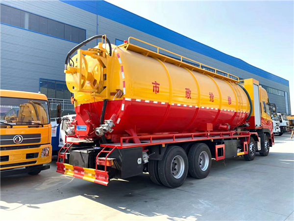 高壓清洗吸污車罐體是污罐的主體,其頂部開設有空氣孔,吸排孔。空氣孔與水氣分離器相通是空氣出入罐體的通道。入孔平時密封著維修時可以打開,吸排孔上連吸污膠管下連虹吸道污液出入罐體的通道。