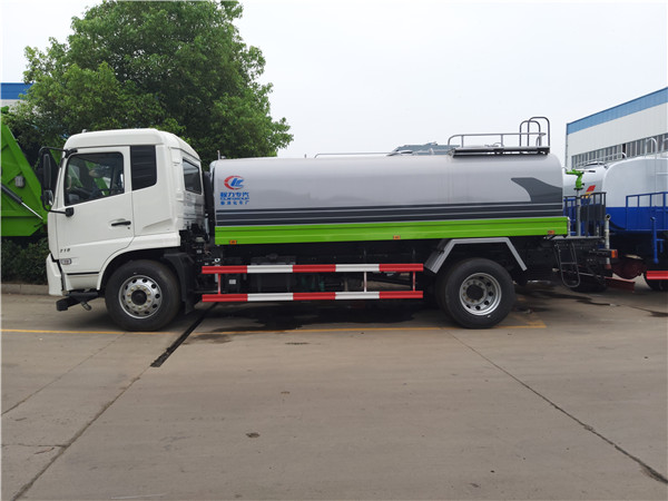 東風天錦灑水車上裝配置:罐體有效容積12立方,采用5毫米厚武鋼碳板板自動焊接制作,配品牌大功率灑水泵,帶前噴后灑側噴,尾部平臺帶高位水炮,可自吸自排。前沖14米寬,水炮射程28米,自吸深度7米。