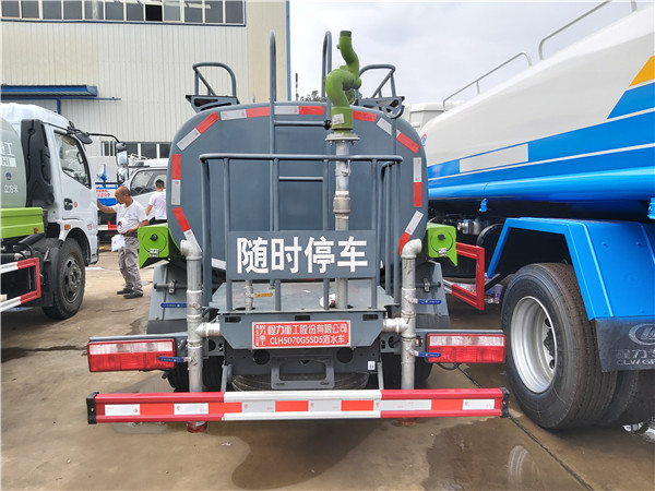 7、灑水車噴水器:灑水車前裝有鴨嘴形噴嘴或圓頭沖嘴,后面裝有圓柱形灑水噴嘴或蓮蓬頭噴嘴,后部有一工作平臺,裝配有水炮。后部還可裝8個噴嘴。