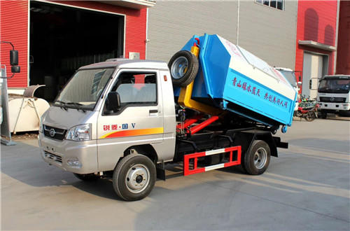 一輛拉臂式垃圾車沒有冷風。