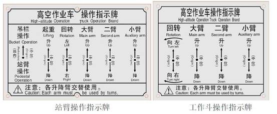 ⑵.上車組合操作閥設有雙向操作(轉臂座椅操作臺一個和吊欄操作臺一個)按操作牌所示進行升高操作。